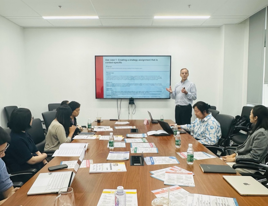 随后,吴雯总经理聚焦AI技术,现场展示了AI技术在教学中的实操过程。在演示中她指出,Cesim AI技术不仅服务于教师的“智能助教”,提供精准的数据洞察、个性化反馈生成与教学策略辅助,而且面向学生能实现量身定制的学习支持,以问题导向激发学生自主学习与深度思考能力。此外,她还分享了Cesim平台将AI深度融入商科教学的最新实践与成果。